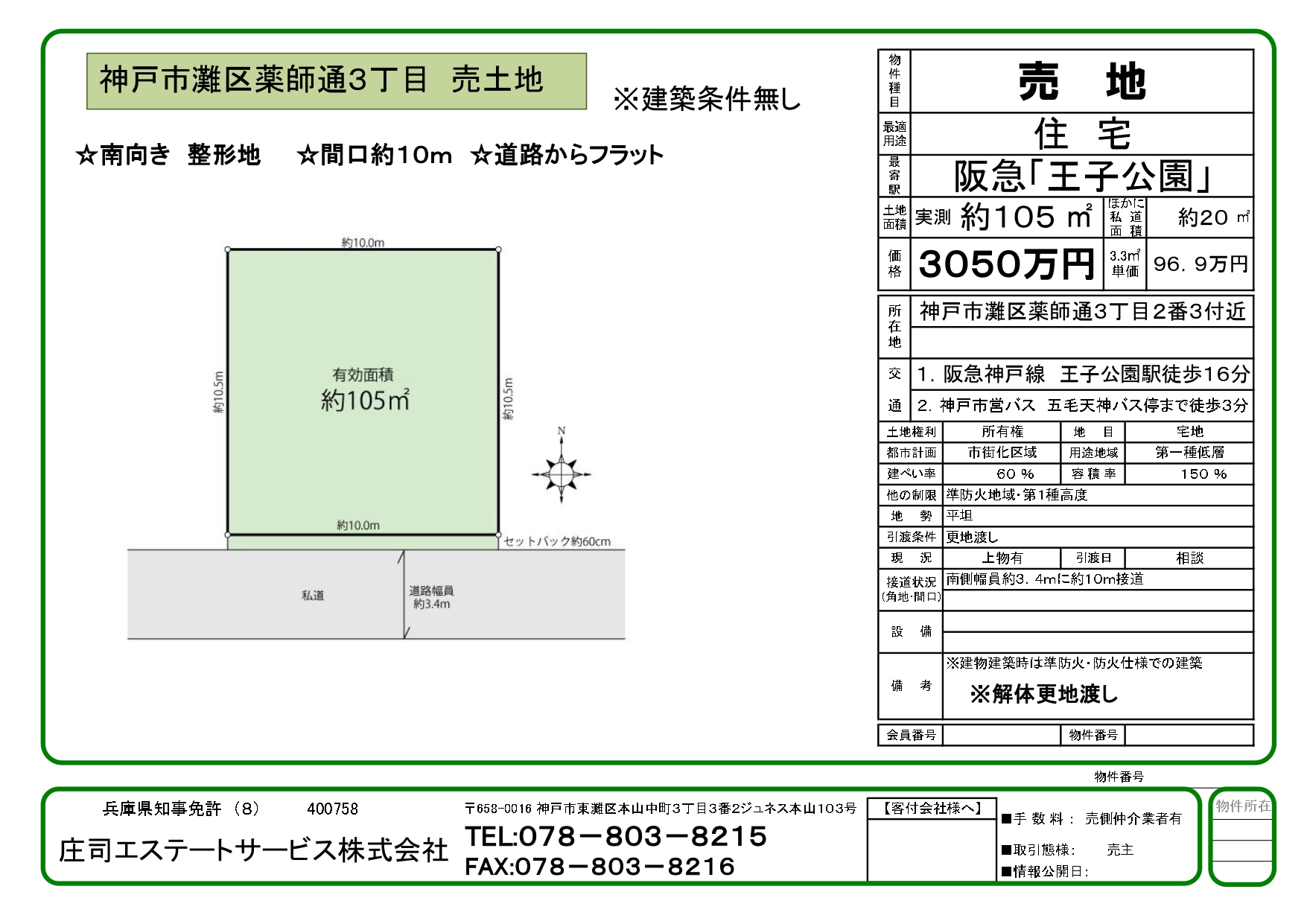 ★成約御礼★ 神戸市灘区篠原北町3丁目 売土地
